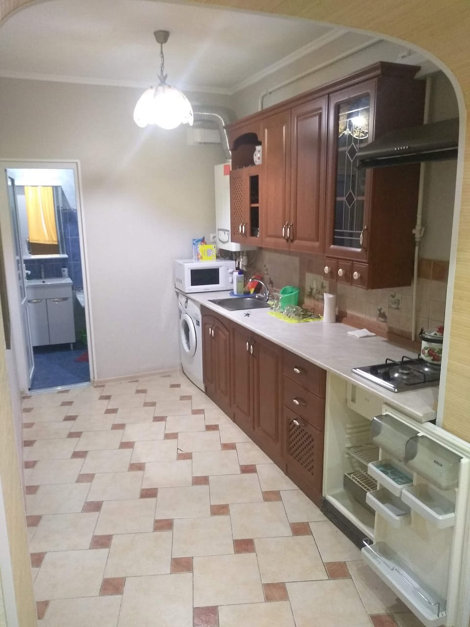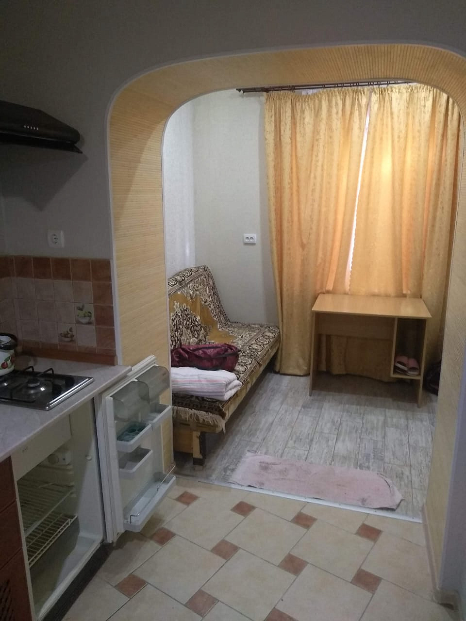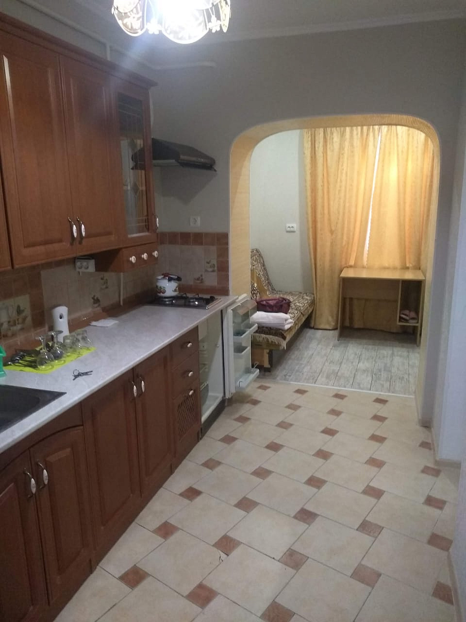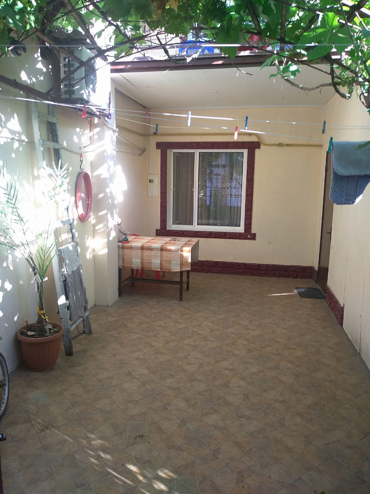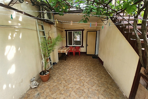 В общем дворе частного двухэтажного дома предлагаем комфортабельный полуторный номер на первом этаже для 4 гостей. В номере есть двуспальная кровать, диван, спальное место у входа, кухня, санузел, телевизор и кондиционер. Также предусмотрен собственный дворик для отдыха. Стиральная машина доступна в подсобном помещении для всех номеров.
