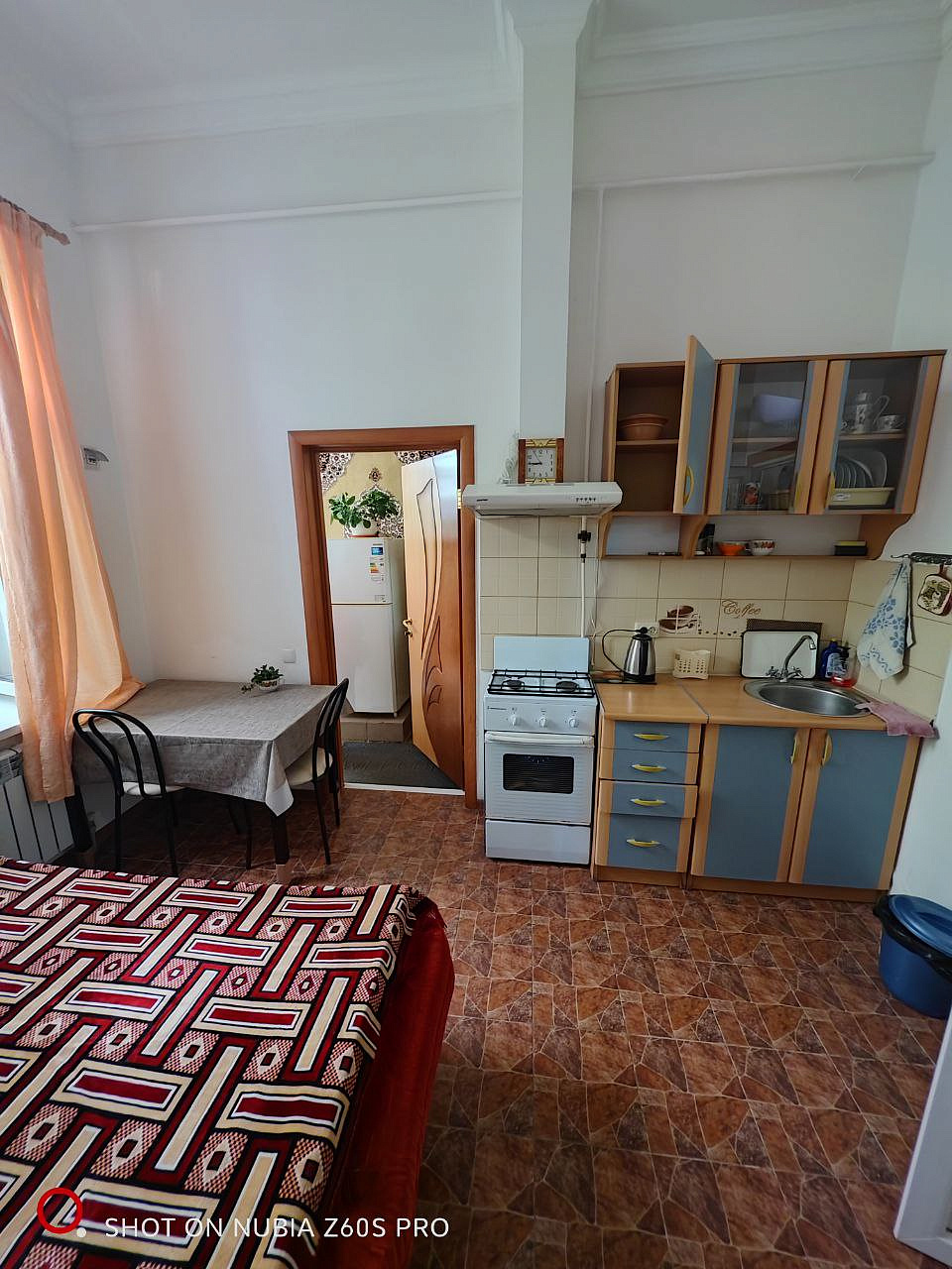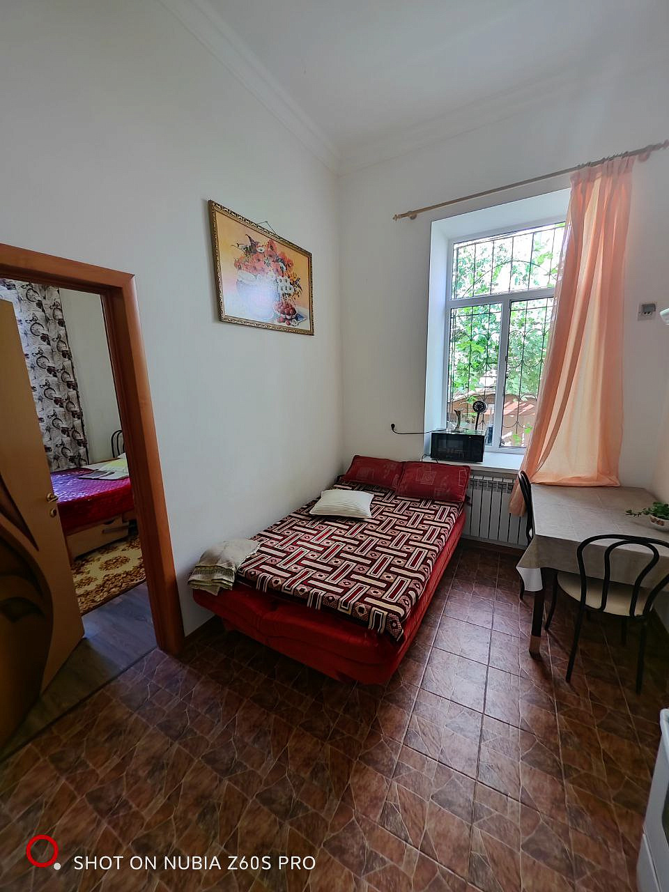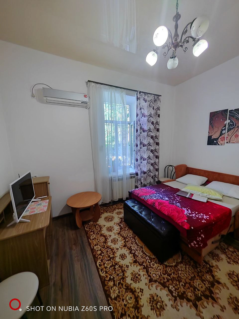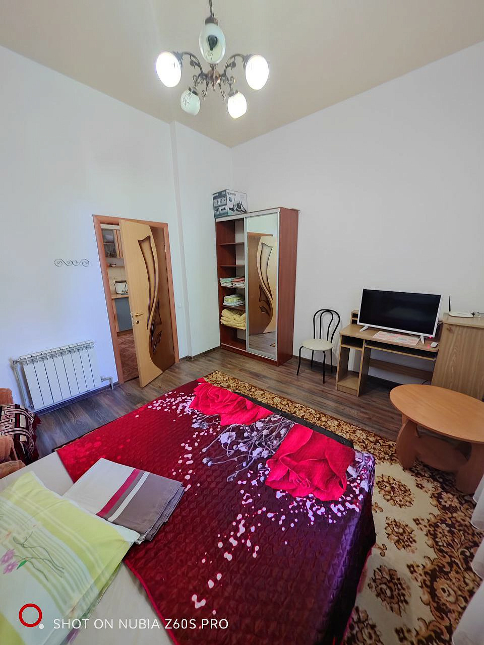 В общем дворе частного одноэтажного дома предлагаем комфортабельный полуторный номер на первом этаже для 4 гостей. В номере есть двуспальная кровать диван,2-х.спальное место у входа на кухне, санузел, телевизор и кондиционер. Также предусмотрен беседка для отдыха.