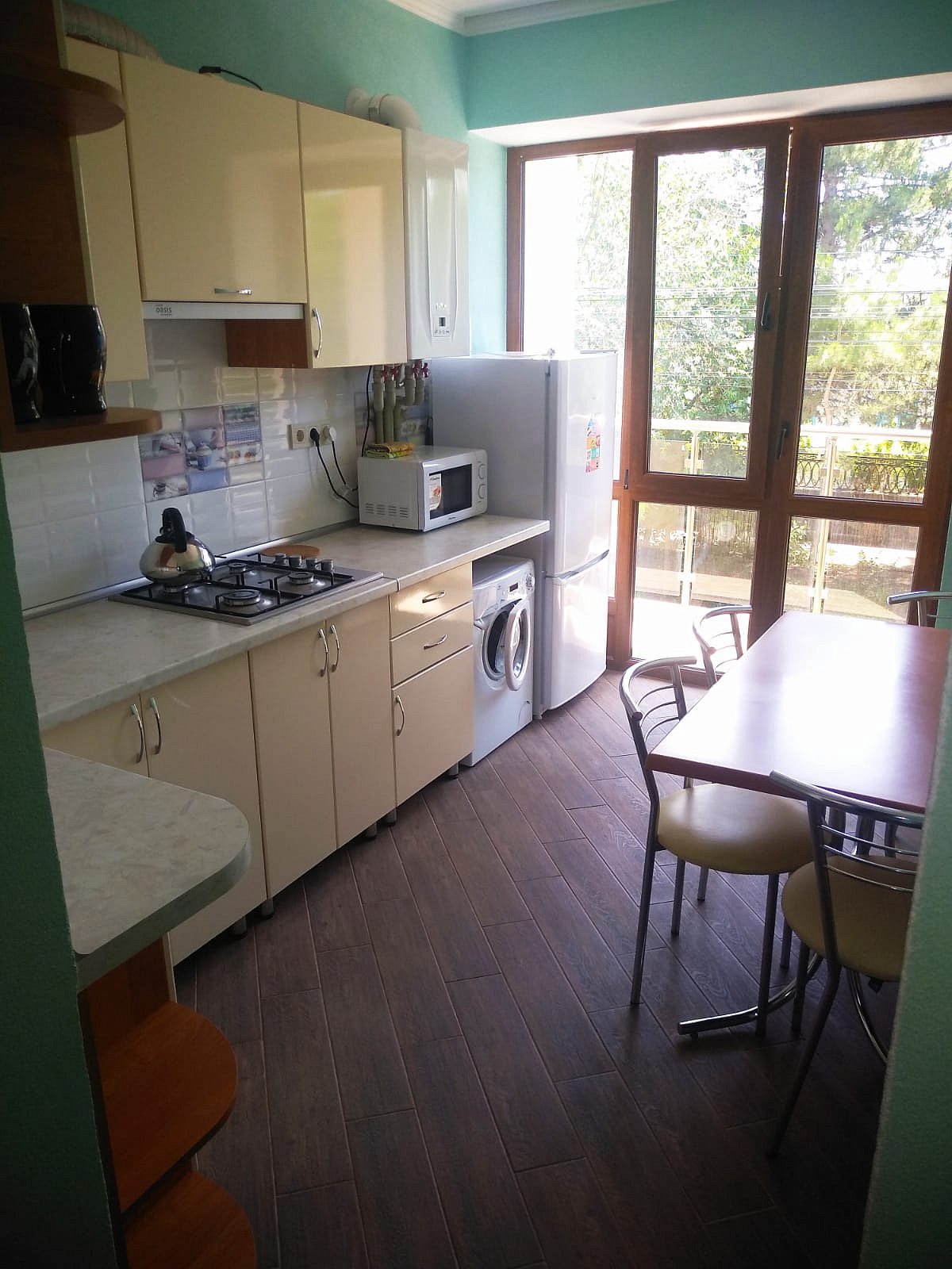 Дом находится в центре курортного района, всего в 7-8 минутах от пляжа на набережной Горького. Рядом есть магазины, парки, кафе, столовые и аквапарк, а также остановки общественного транспорта.
