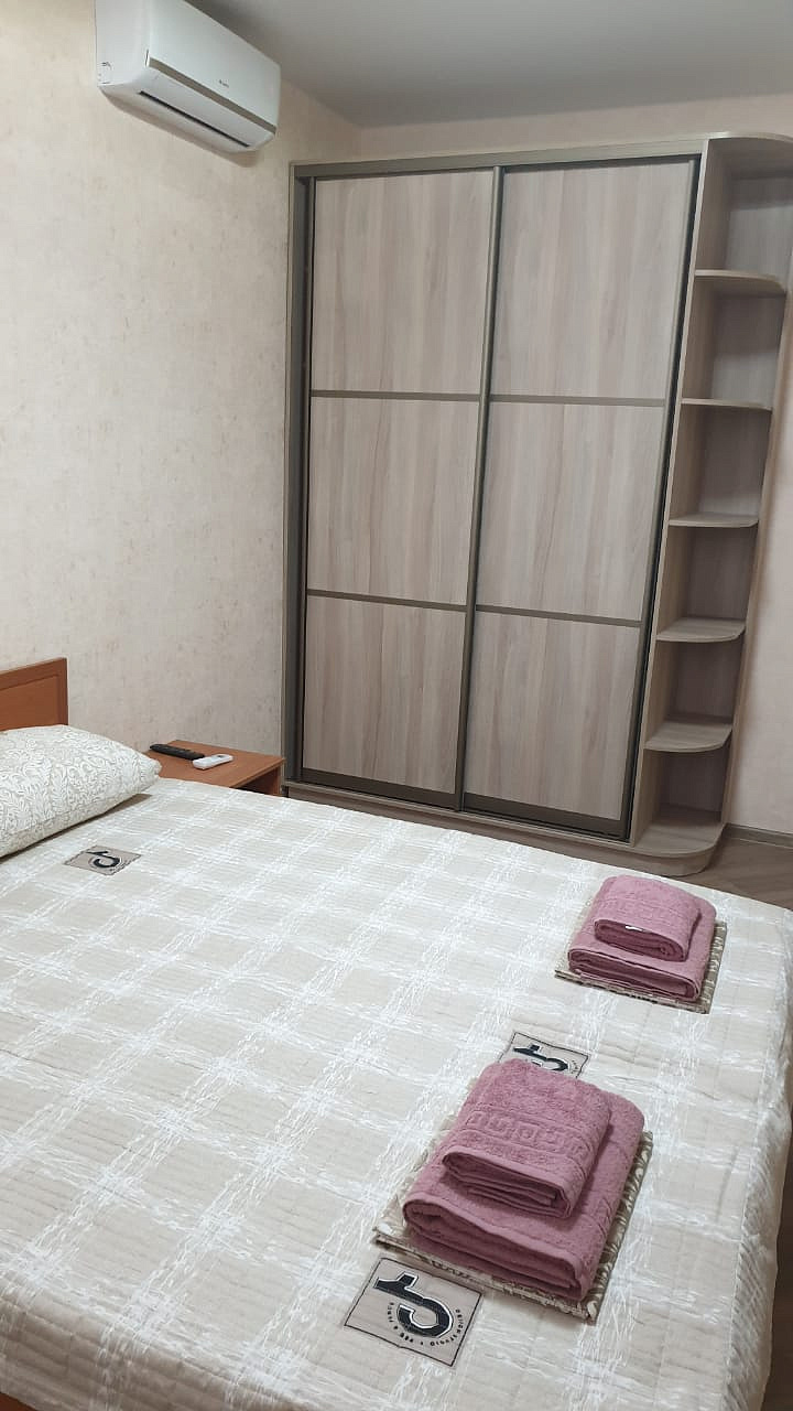 Доступен на первом этаже двухкомнатный вариант с изолированными спальнями до 4 человек. В номерах — двуспальная кровать, кондиционер, телевизор
