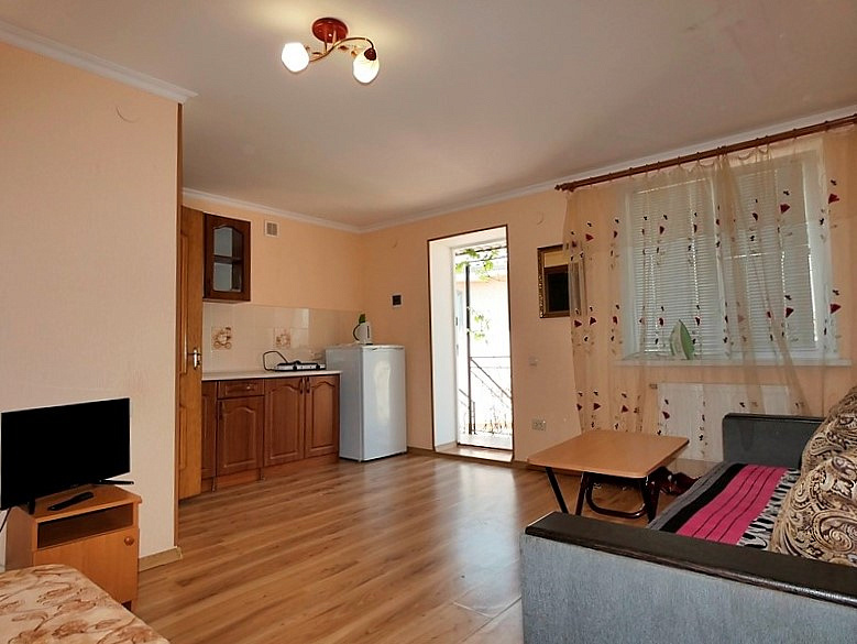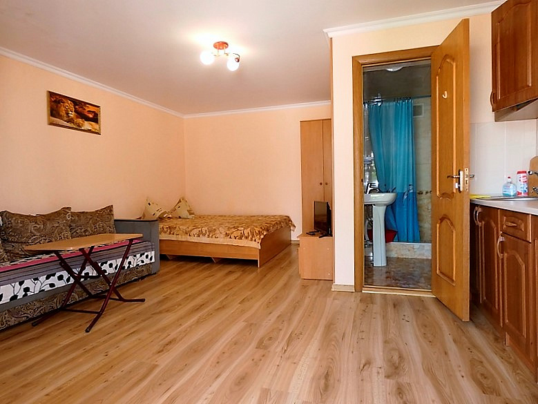 Мы предлагаем четыре комфортабельные однокомнатные студии, по два номера на каждом этаже, а также уютную двухкомнатную квартиру в одноэтажном здании. Каждая студия включает в себя кухню, двуспальную кровать, диван и современный санузел с душевой. Для вашего удобства номера оснащены кондиционером, холодильником, телевизором и бесплатным Wi-Fi.