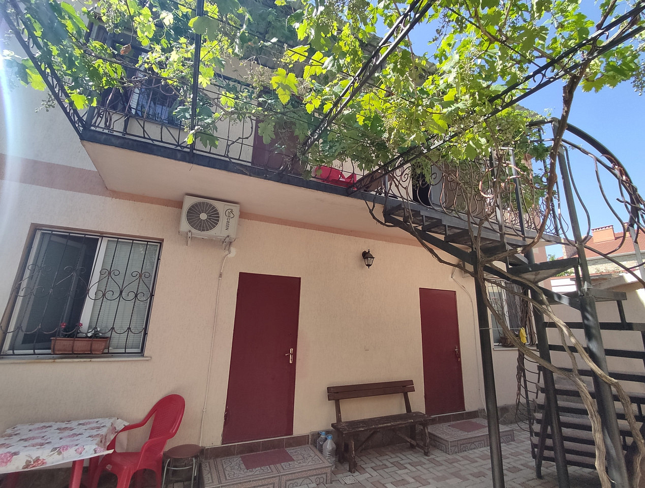 Добро пожаловать в гостевой дом «На Кирова», расположенный в самом сердце популярного курорта! Наш уютный дом с внутренним двориком, увитым зелеными лозами винограда, предлагает вам атмосферу домашнего уюта и спокойствия. Всего в 10 минутах пешком вы найдете широкий пляж с мягким золотистым песком, идеально подходящий для семейного отдыха и солнечных дней.