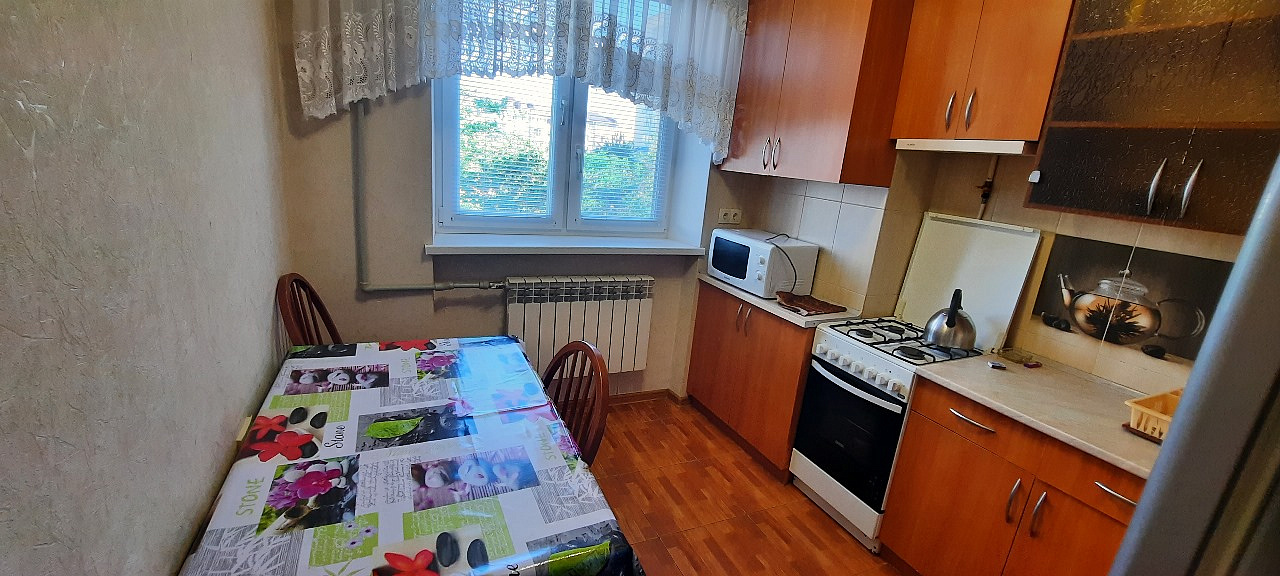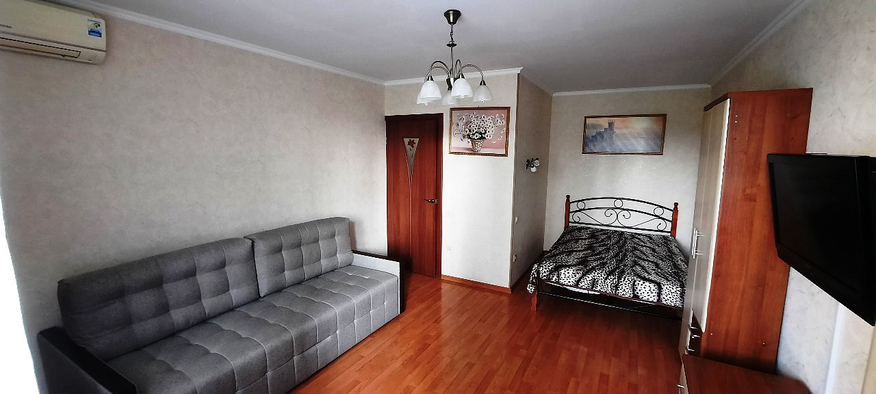 Однокомнатная квартира в центре курортного района. Всё удобства для комфортного проживания. Рядом парк аттракционов, магазины, кафе, остановки общественного транспорта. До моря набережной Горького 7-8 минут.