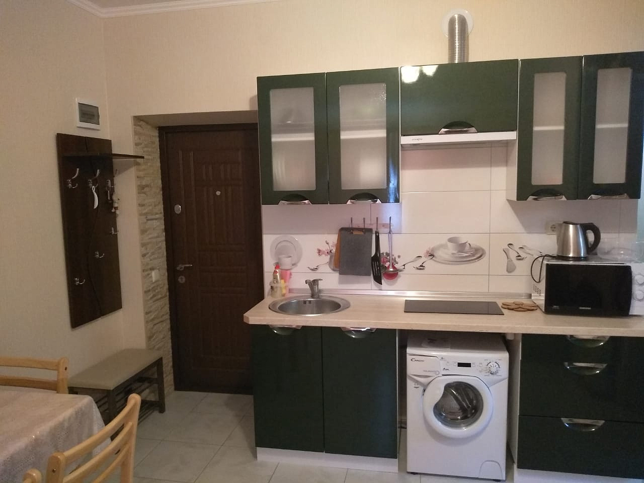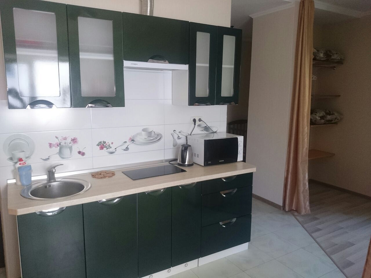 Предлагаем вам комфортабельную 2-х. ком. студию на втором этаже для пяти гостей. В номере двуспальная кровать, два дивана, кухня, санузел, телевизор, кондиционер и стиральная машинка.